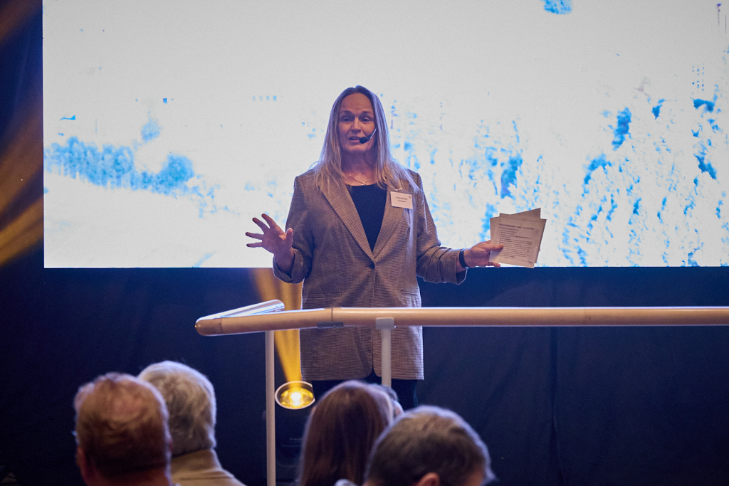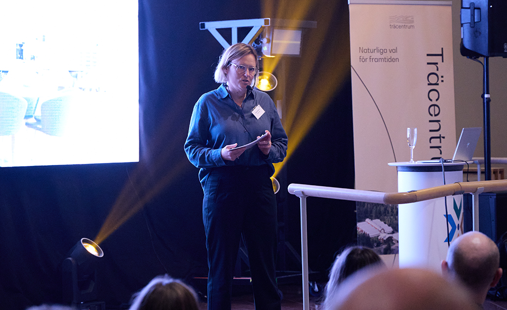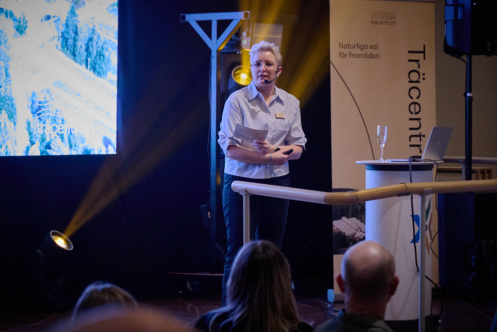 Frida Boklund, vd för Företagarna i Jönköpings län, tillika styrelseledamot i Träcentrum, var kvällens konferencier.