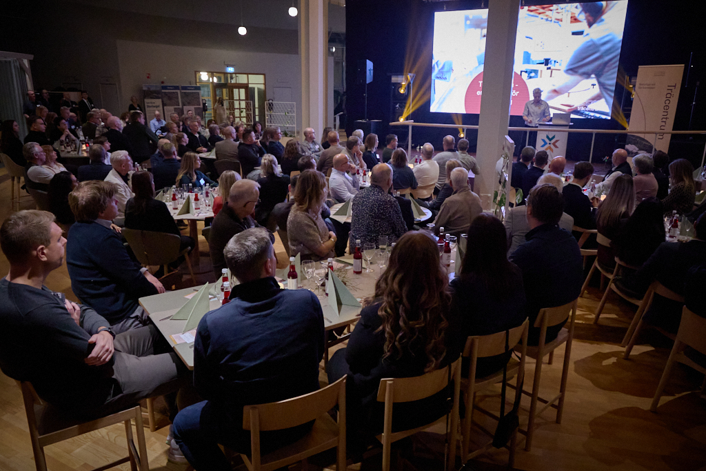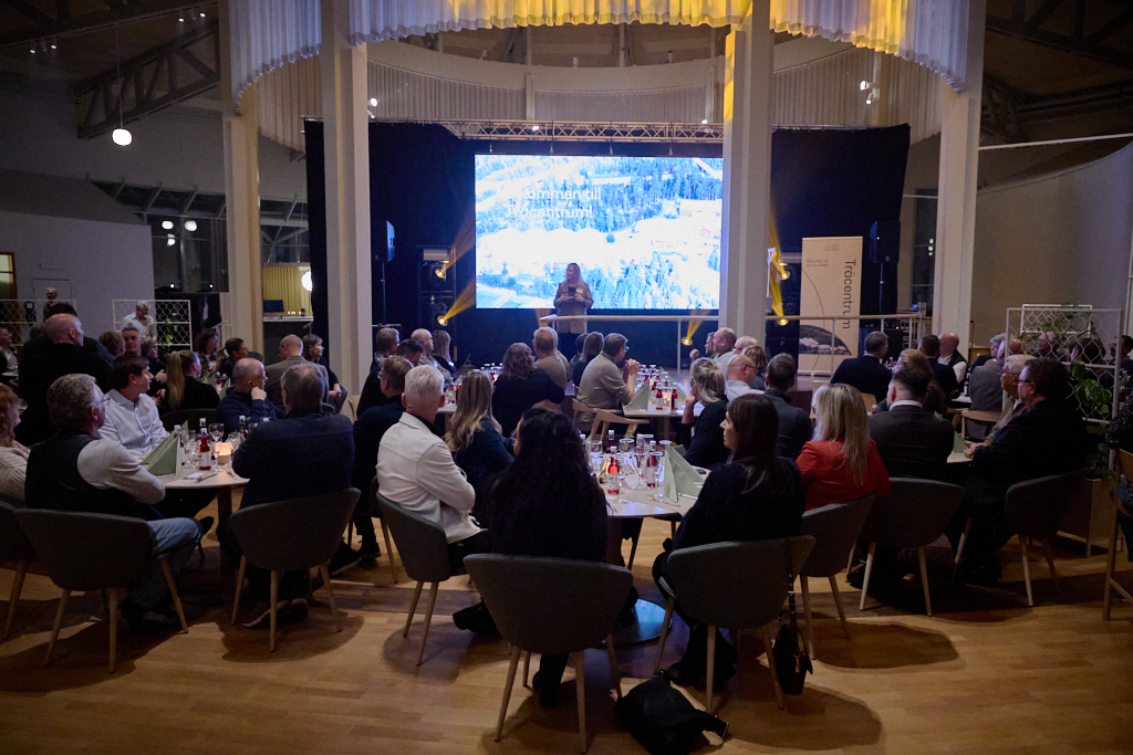 30-årsjubilerande Träcentrum firar i ny, fin kostym – bland annat med nyinredda konferensutrymmen och nyöppnade restaurang Stam. De 150 gästerna fick njuta av mat på temat skog och vilt, samtidigt som de fick möjlighet att upptäcka Träcentrum ”på nytt”. För många var det även första gången att besöka Träcentrums kompetensutvecklingsdel med sina yrkesutbildningar inom trä och järnväg och det stora snickeriet. Kvällens diskussioner både på scen och runt borden kretsade också kring kompetensförsörjning, tillväxt och konjunktur.
