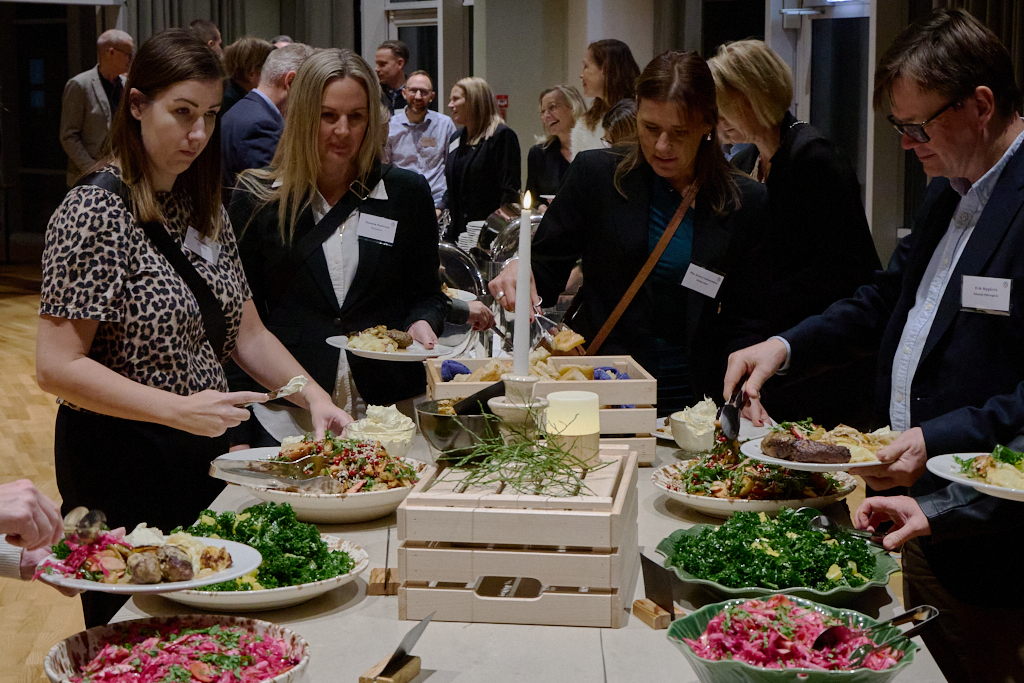 Träcentrums nya restaurang ”Stam” bjöd på ett dignande bord med bland annat viltfärsbiffar.