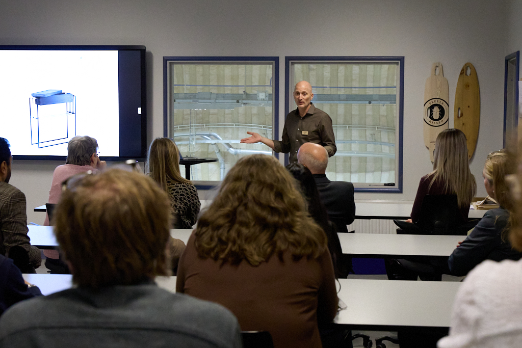 Emma Hallman, fabrikschef på JELD-WEN, gav värdefulla insikter i hur en organisation kan lyckas driva utveckling och förändring även under en lågkonjunktur.