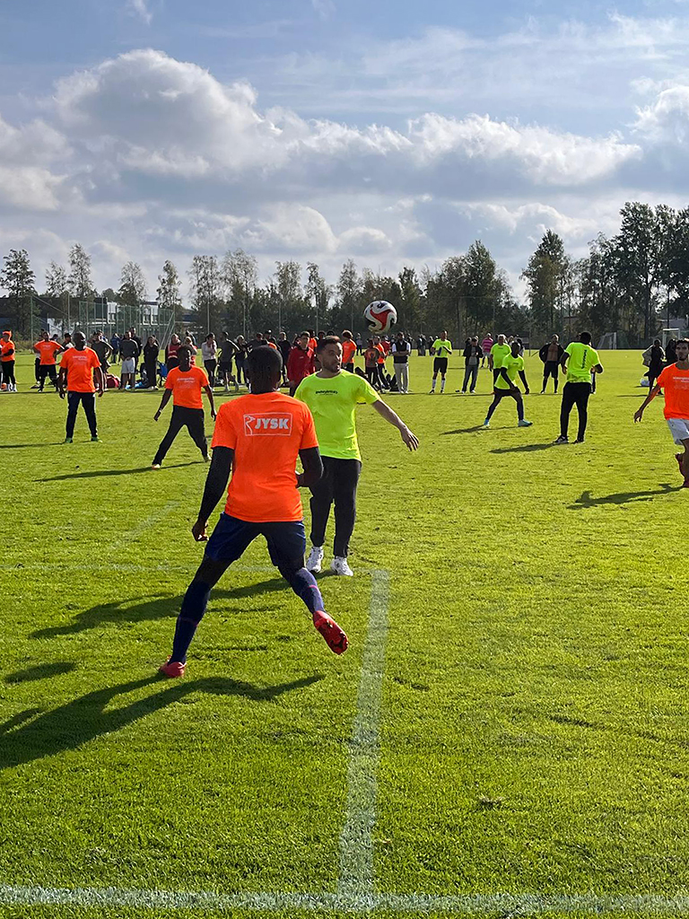 Jysk i orange och Industrilås i neongult – två lag, två färger, samma kämpaglöd.